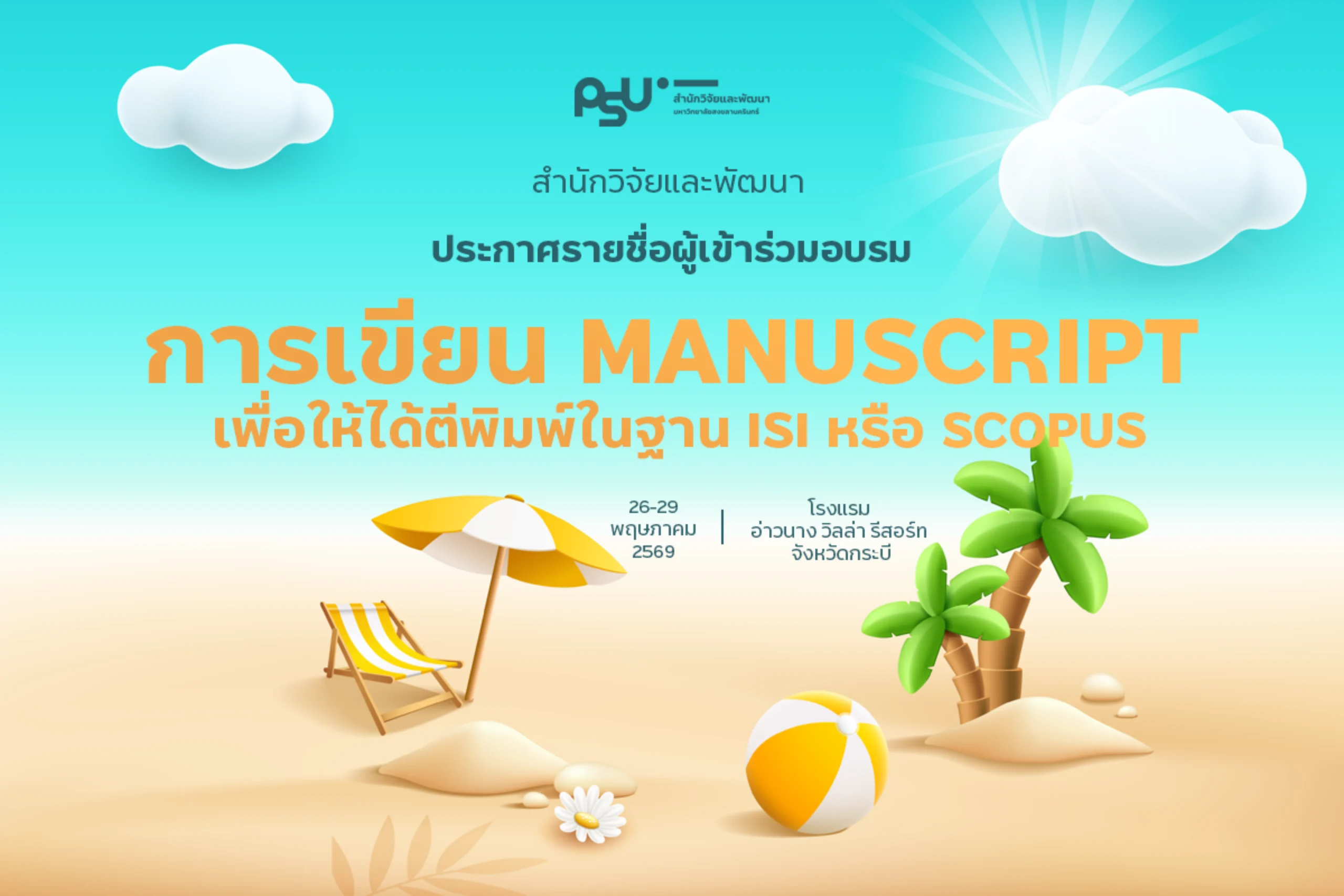 เรามีการใช้คุกกี้ที่มีความจำเป็นอย่างยิ่ง หรือเพื่อการทำงานของเว็บไซต์ และเครื่องมืออื่นๆ เพื่อช่วยเพิ่มประสบการณ์และเพื่อประสิทธิภาพในการใช้งาน คุณสามารถศึกษารายละเอียด นโยบายแนวปฎิบัติการใช้คุกกี้ มหาวิทยาลัยสงขลานครินทร์ ได้ที่ Cookies Policy