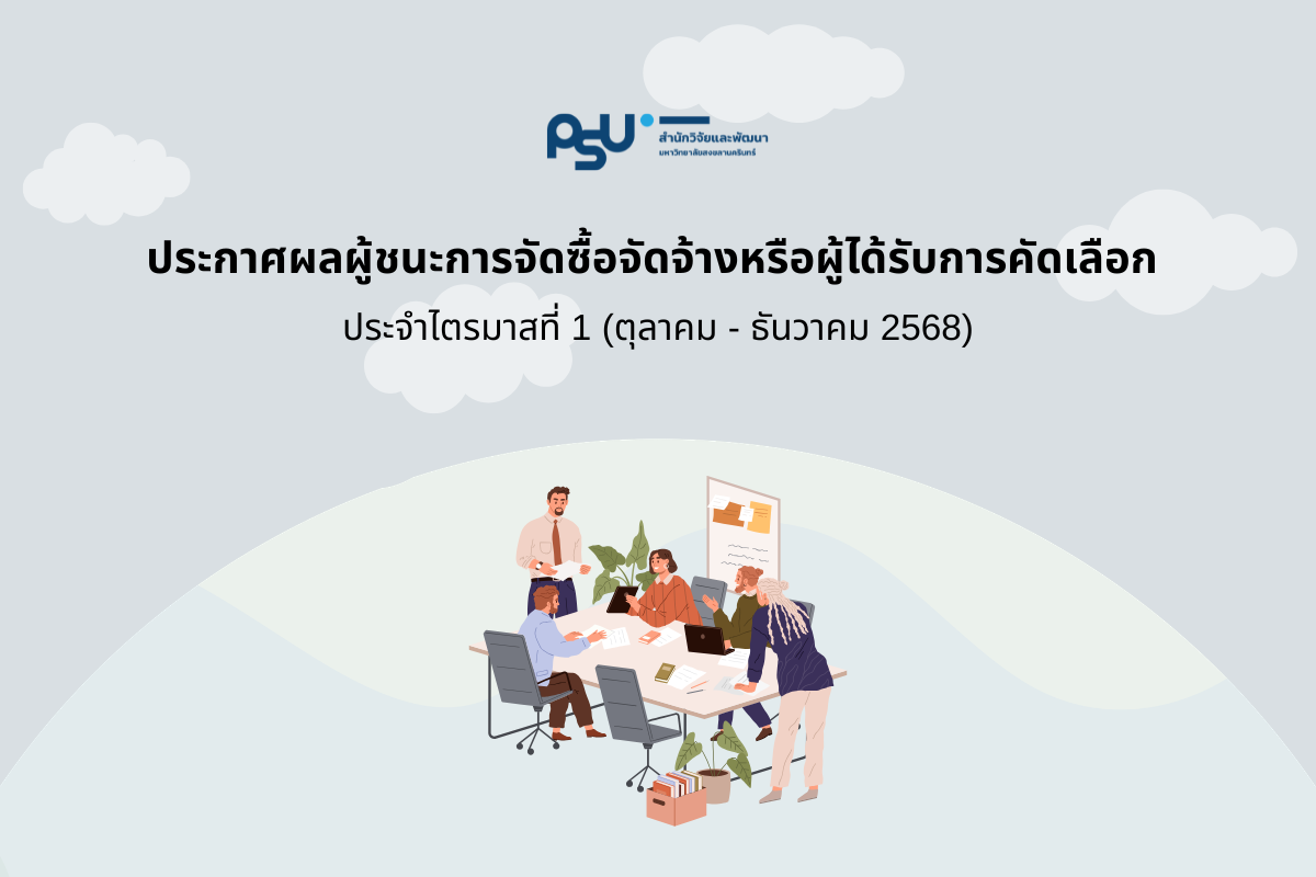 เรามีการใช้คุกกี้ที่มีความจำเป็นอย่างยิ่ง หรือเพื่อการทำงานของเว็บไซต์ และเครื่องมืออื่นๆ เพื่อช่วยเพิ่มประสบการณ์และเพื่อประสิทธิภาพในการใช้งาน คุณสามารถศึกษารายละเอียด นโยบายแนวปฎิบัติการใช้คุกกี้ มหาวิทยาลัยสงขลานครินทร์ ได้ที่ Cookies Policy