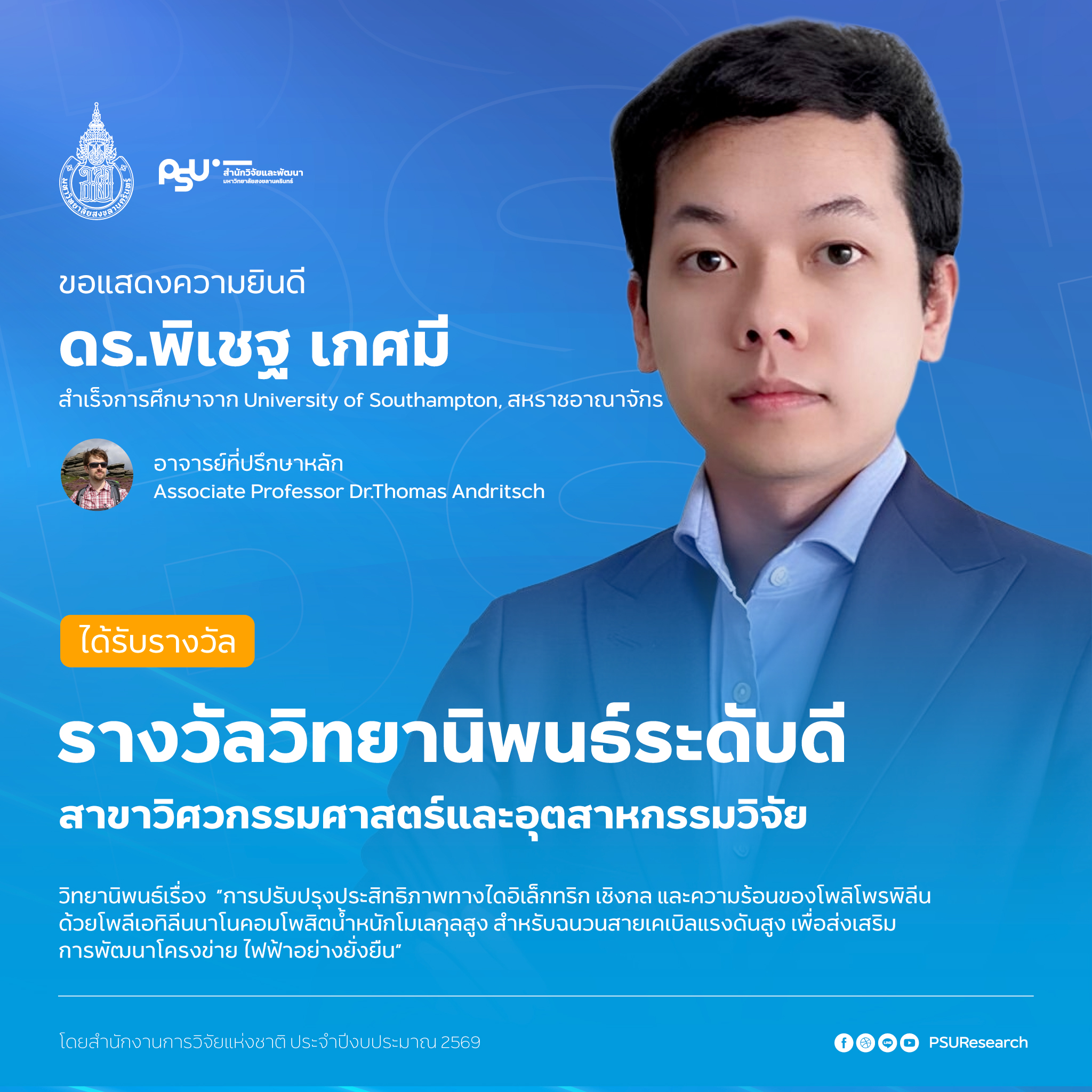 สำนักวิจัยและพัฒนา ม.อ. ขอขอบคุณและร่วมแสดงความยินดีอย่างสุดซึ้ง กับนักวิจัยทุกท่านที่อุทิศตนทุ่มเทแรงกายแรงใจ ฝ่าฟันอุปสรรคในห้องแล็บและพื้นที่จริง จนกลายเป็นนวัตกรรมที่เปลี่ยนโลกได้ในวันนี้ ทุกหยาดเหงื่อและความมุ่งมั่นของพวกท่านคือ “หัวใจสำคัญ” ที่ช่วยให้ ม.อ. ยังคงยืนหยัดเป็นเสาหลักด้านการวิจัยที่แข็งแกร่งของภาคใต้และของไทย