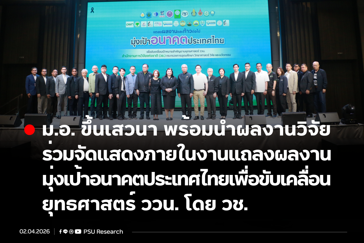 เรามีการใช้คุกกี้ที่มีความจำเป็นอย่างยิ่ง หรือเพื่อการทำงานของเว็บไซต์ และเครื่องมืออื่นๆ เพื่อช่วยเพิ่มประสบการณ์และเพื่อประสิทธิภาพในการใช้งาน คุณสามารถศึกษารายละเอียด นโยบายแนวปฎิบัติการใช้คุกกี้ มหาวิทยาลัยสงขลานครินทร์ ได้ที่ Cookies Policy