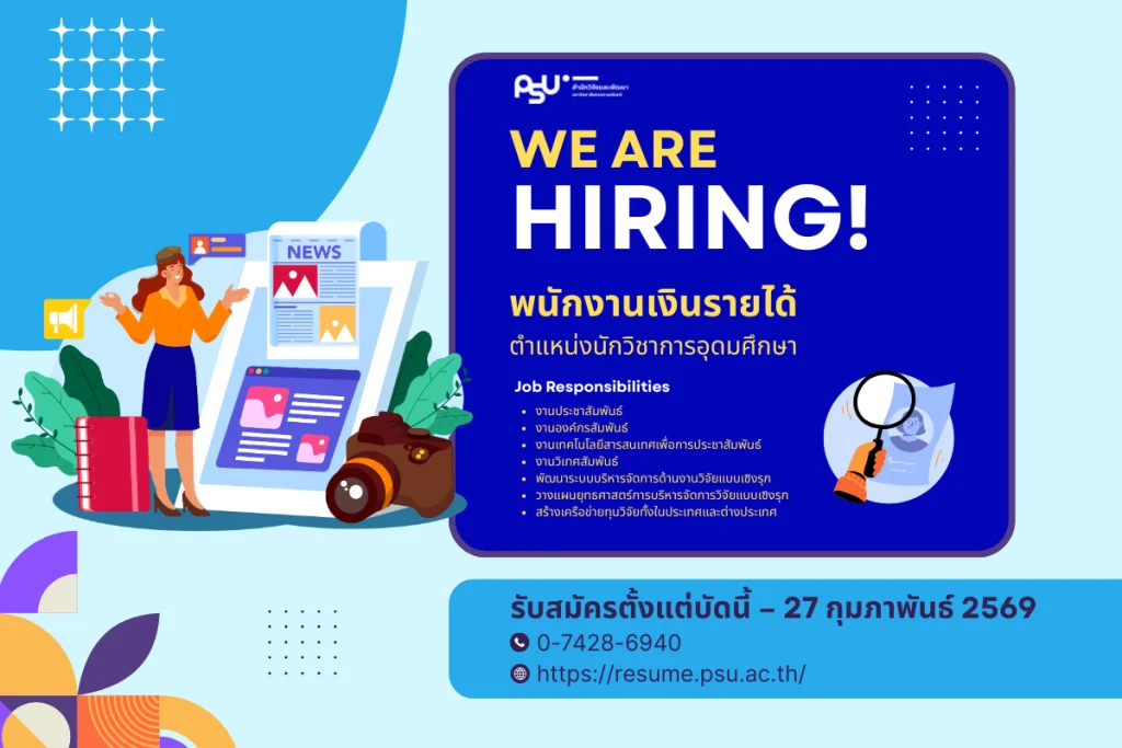 เรามีการใช้คุกกี้ที่มีความจำเป็นอย่างยิ่ง หรือเพื่อการทำงานของเว็บไซต์ และเครื่องมืออื่นๆ เพื่อช่วยเพิ่มประสบการณ์และเพื่อประสิทธิภาพในการใช้งาน คุณสามารถศึกษารายละเอียด นโยบายแนวปฎิบัติการใช้คุกกี้ มหาวิทยาลัยสงขลานครินทร์ ได้ที่ Cookies Policy