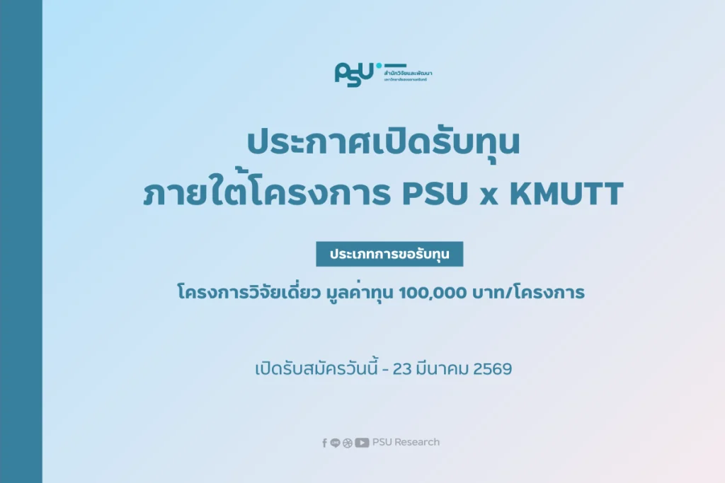 เรามีการใช้คุกกี้ที่มีความจำเป็นอย่างยิ่ง หรือเพื่อการทำงานของเว็บไซต์ และเครื่องมืออื่นๆ เพื่อช่วยเพิ่มประสบการณ์และเพื่อประสิทธิภาพในการใช้งาน คุณสามารถศึกษารายละเอียด นโยบายแนวปฎิบัติการใช้คุกกี้ มหาวิทยาลัยสงขลานครินทร์ ได้ที่ Cookies Policy