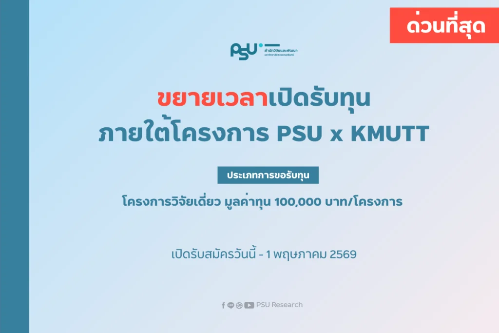 มหาวิทยาลัยสงขลานครินทร์ (ม.อ.) ประกาศศักดาคว้า 6 รางวัลผลงานคุณภาพ (NRCT Quality Achievement Award) ประจำปี 2569 จาก วช. ครอบคลุมทั้งผลงานวิจัย วิทยานิพนธ์ และสิ่งประดิษฐ์ ตอกย้ำความเป็นเลิศด้านนวัตกรรมและมาตรฐานงานวิจัยระดับสากล