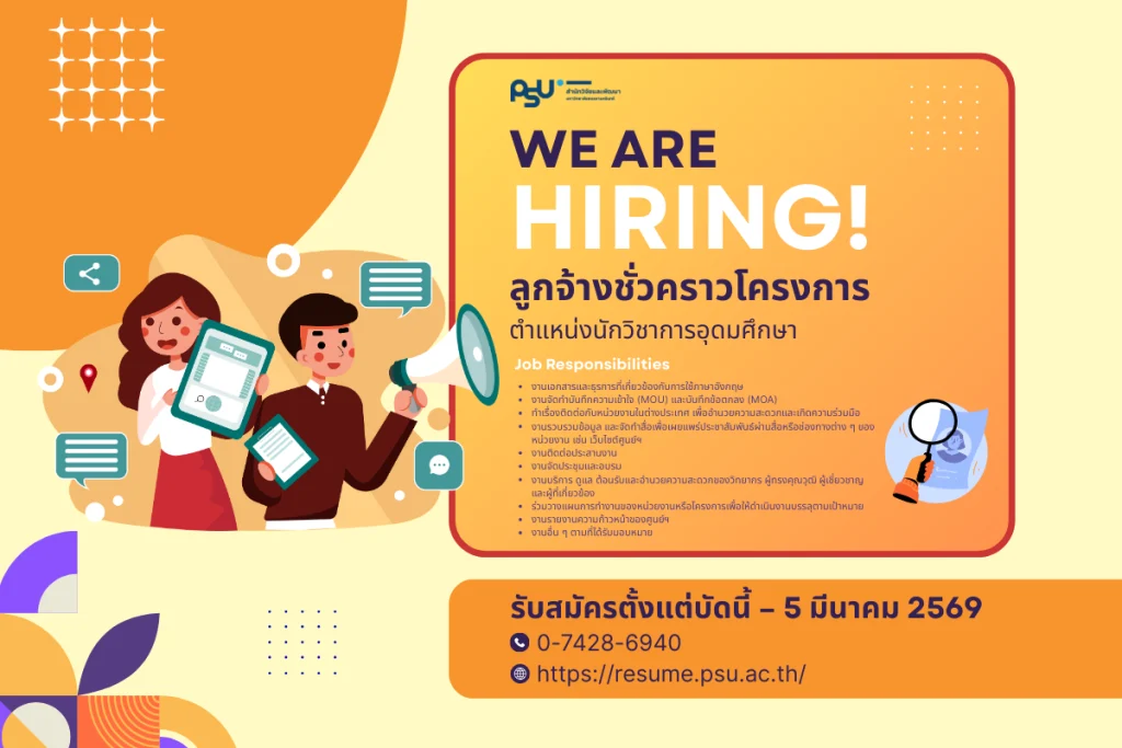 ขอเชิญอาจารย์ นักวิจัย ผู้ประสานงานวิจัย มหาวิทยาลัยสงขลานครินทร์ เข้ารับฟังการประชุมชี้แจงการเปิดรับข้อเสนอโครงการ ทุน Fundamental Fund ประจำปี 2569
