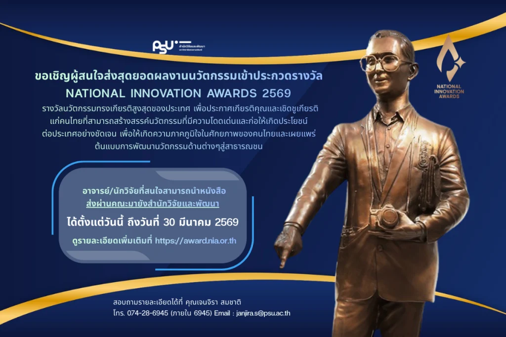 ประชาสัมพันธ์กิจกรรม | 10 views ขอเชิญส่งผลงานประกวด “รางวัลนวัตกรรมแห่งชาติ 2569” รางวัลอันทรงเกียรติสูงสุดแห่งวงการนวัตกรรม