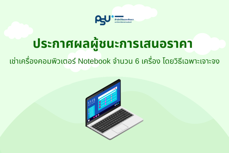 จัดซื้อจัดจ้าง 22 February 2026 2:30 PM ผู้ชนะการเสนอราคา เช่าเครื่องคอมพิวเตอร์ Notebook โดยวิธีเฉพาะเจาะจง