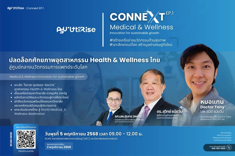 กิจกรรม 6 November 2025 9:01 AM ม.อ. จัดเวที UtiRise Connext EP.1 จุดประกายแนวคิดพัฒนาอุตสาหกรรมสุขภาพไทยอย่างยั่งยืน