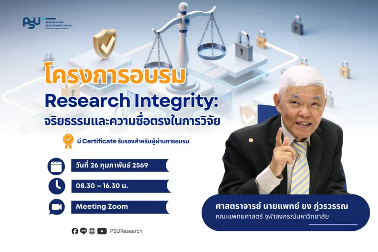 ประชาสัมพันธ์กิจกรรม 29 January 2026 2:40 PM ขอเชิญอบรม “Research Integrity: จริยธรรมและความซื่อตรงในการวิจัย”